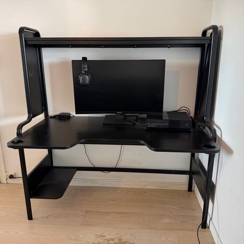 Skrivebord/pult fra ikea i fargen beige og antrasitt. God tilstand. Er delvis demontert. Kan hentes på Vika i Oslo