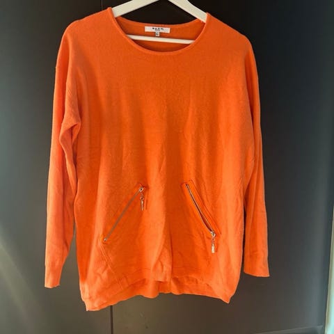 Pen cerise genser str L, ikke brukt, 3/4 arm og 80% viskose og 20 % polyester, for liten