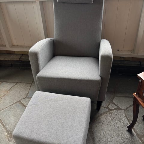 Fint og behagelig lenestol med krakk til salg ingen skade eller riper huset er røyk fritt og har ikke dyr i huset