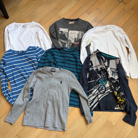4 bukser fra name it, dongeri er ubrukt. Stramming inni livet i alle. Satt på strykelapp på slitasje på kne. Ellers ingen anmerkninger.