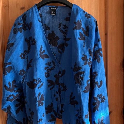 Lindex Bluse i beige, størrelse 44. Denne blusen har et delikat design og er laget for kvinner. Den passer godt til både hverdagsbruk og formelle anledninger.