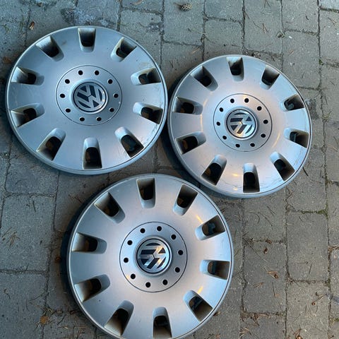 5 stk. hjulkapsler/navkapsler. Fire brukte, en ny i orginal innpakning. Ble igjen i kjelleren da jeg solgte min VW Santana i 1996. Så vidt jeg har funnet ut passer de også til en rekke andre VW-modeller fra åtti og nittitallet, kanskje andre årsmodeller også. Diameteren er 15 cm. Orginalinnpakningen har sett sine beste dager, men kapselen inni ser helt fin ut.