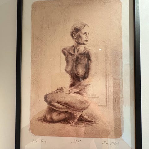 Hans Gude reproduksjon av maleriet 'Hvile Ved Bekken' fra 1860. Dette kunstverket er en reproduksjon etter originalen, og er innrammet i en solid ramme. Maleriet viser et naturskjønt landskap og er ideelt for å tilføre en klassisk touch til ethvert rom.