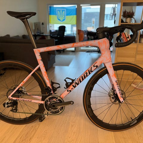 Selger en rå landeveissykkel fra Specialized, Tarmac S-Works SL6 med elektronisk girgruppe