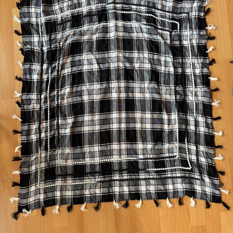 Ruteteskjer i bomull, blått og lys grønt. 100x 100cm.