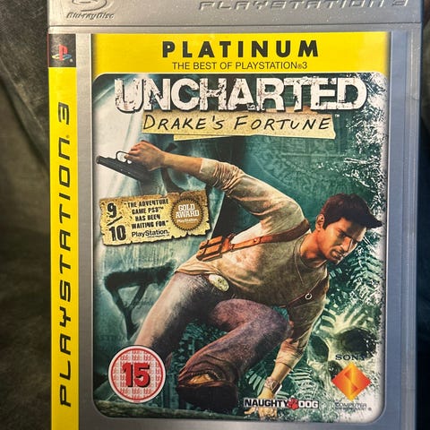 Uncharted Drake's Fortune Playstation 3 Spill i Platinum Edition. Dette spillet tilbyr en spennende action-eventyr opplevelse. Spillet er designet for Playstation 3-plattformen og er kjent for sin engasjerende historie og imponerende grafikk. Passer for spillere fra 16 år og oppover.