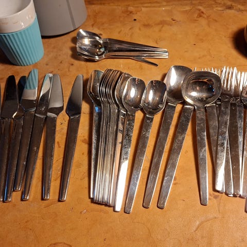 Forskjellig kjøkkenutstyr som ikke er i bruk. Diverse tallerkner, kopper, glass og bestikk. Det meste fra IKEA. Selges billig - kom med bud. Hentes på Vigeland. Selger også en smoothiemaskin, en kullsyremaskin og en frityrkoker. Hjelp meg å rydde - kom med bud