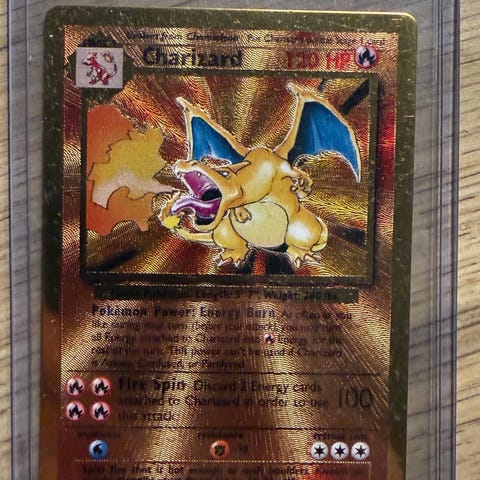 Pokémon, Pokemon, Charizard, Gold Metal, Gullkort, Celebrations, Classic Collection, Ultra Premium Collection, UPC, 4/102, Samlekort, Samlerkort, Trading Card, TCG, CGC, PSA, BGS, Graded, Gradering, Mint, Near Mint, NM, 8.5, 9, 10, Collector, Collectible, Investering, Limited, Sjeldent, Rare, Holo, Vintage, Original, Pokémonkort, Pokemonkort, Kortpakke, Booster, Booster Box, Display, Ultra Premium, Premium, Sjelden, Samler, Charizard kort, Pokémon TCG, Pokemon TCG