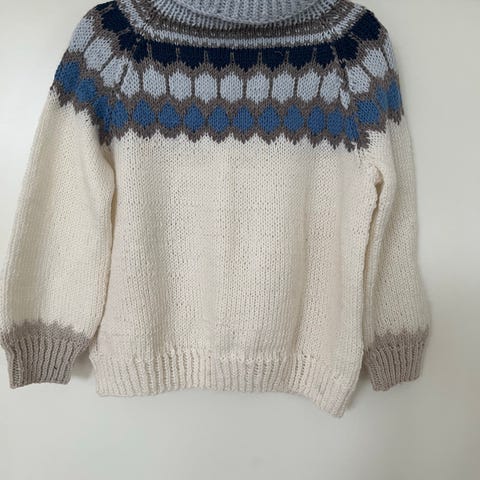 Nydelig strikket Mariusgenser i en smal modell med ribbstrikk. Passer meg dessverre ikke lenger. Vil si det er en small-liten medium.