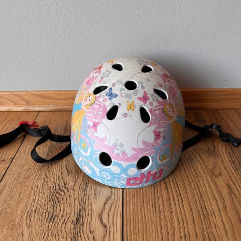 Brukt av ett barn. Vi hadde to hjelmer, så brukt ‘nå og da’.