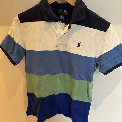 Pent brukt pique fra Polo Ralph Lauren i str. L/14-16 år. Striper i freshe farger.