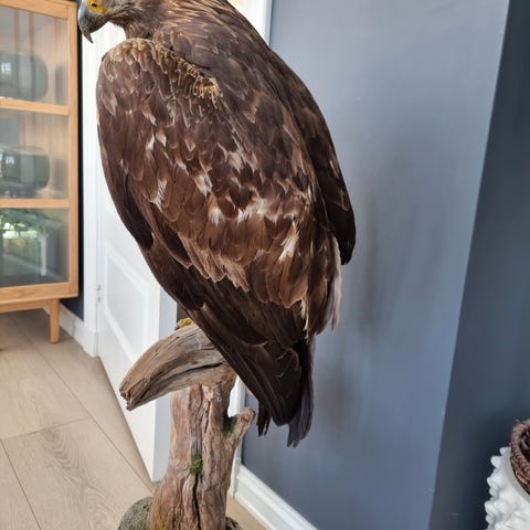 Store fugler, kongeørn hubro, og dyr som Gape. Jerv osv Utstoppet