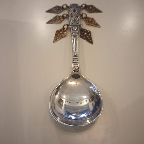 Laget av sølv 40g med intrikate detaljer på håndtaket. Egnet for samlere eller som et elegant tillegg til borddekkingen.