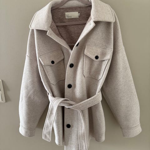 Kort kåpe med belte i lys beige/krem. Pent brukt.