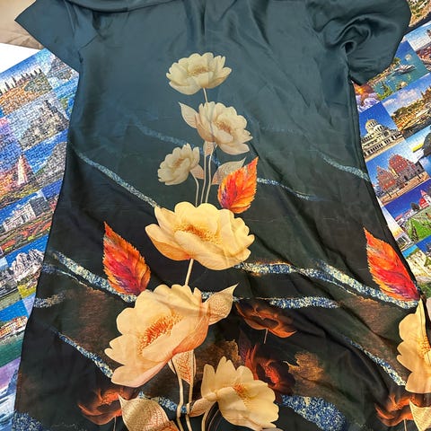 & Other Stories Andre kjoler i brun farge, størrelse S. Kjøpt i år, brukt én gang, men MERKENE ER KUTTET AV fordi de var veldig synlige på makraméen. For en høyde på 162 vil kjolen være maxi-lengde, du kan se eksemplet mitt på bildet.