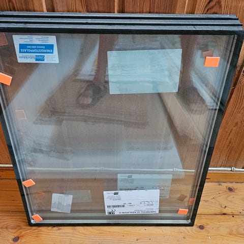 Svart metall vindu med frostet hvit glass fra Stiil as