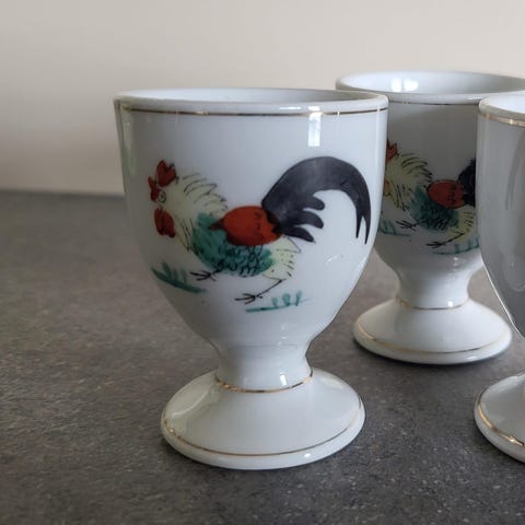 Jeg har seks retro eggekopper i knallgul plast for salg. Det er som om hver og en får servert en sol med egg i midten. Passer helt perfekt til de lange påskefrokostene…..