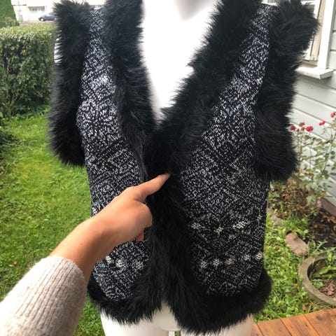 Strøken vest med fuskepels og ull, Dansk design Share Female, str. M