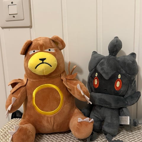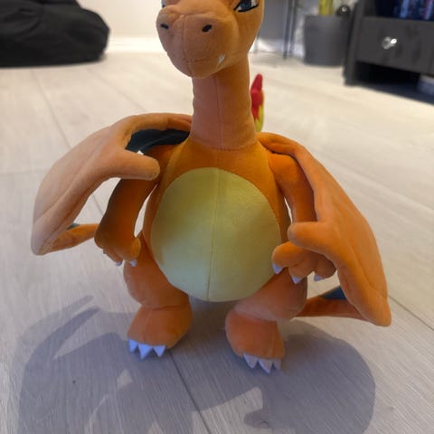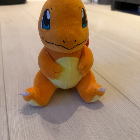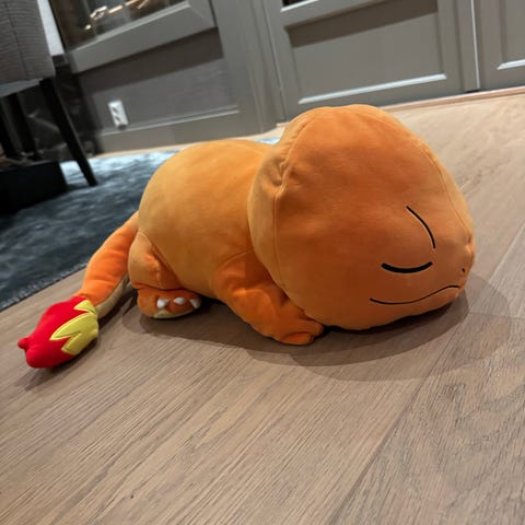 Sønnen selger unna leker han har vokst fra. Pokémon kosedyr av modellene Charmander og Snorlax, 30cm.