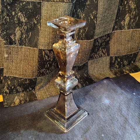 2 stk vintage flotte lysestaker antatt aluminium/glass - 19 cm høye. Selges samlet 360kr + evt frakt 69kr postnord eller fiks ferdig