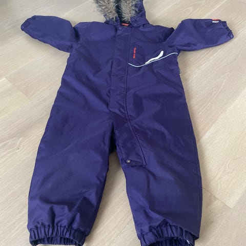 Vinterdress til barn. Ikke så veldig kjekt merke, men denne er en av de beste vi har hatt. Brukt i barnehage og barnet har aldri vært kald og den er veldig slitesterk. Skoreimen under er slitnet, men knappene er ikke noe galt med. Anbefales 😊👌