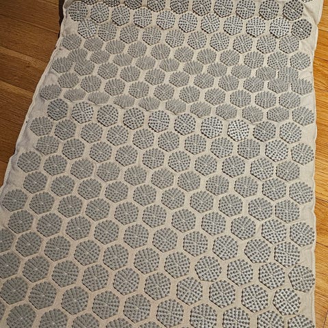 Spikermatte med 230 pigger som setter i gang blodomløpet og gir en behagelig akupressur behandling. Myker opp spente og støle muskler når du er stiv, anspent eller stresset. Trekk i 100% bomull med pigger i ABS materiale. Fylt med skumgummi. Størrelse: 65 x 40 x 2 cm.