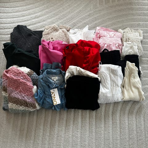 Stor klespakke – dameklær i hovedsakelig størrelse S, men noen få plagg er i m og xs.