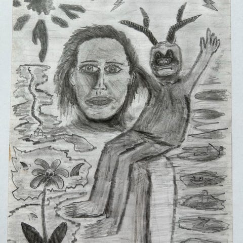 Flott skisse tegning av dame ansikt i profil kvinne blyanttegning