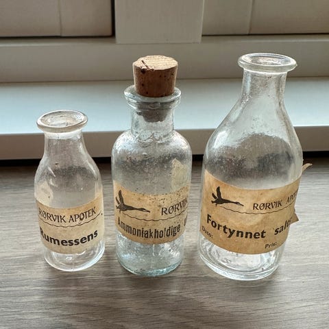 6 Gamle medisin flasker.