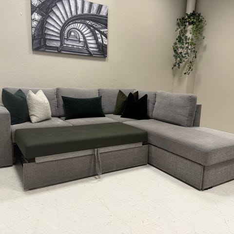 2 av modulene kan trekkes ut og brukes som en komfortabel soveplass – ideell for gjester. I tillegg følger det med en puff med romslig oppbevaring – perfekt til puter, tepper eller annet du vil ha lett tilgjengelig.