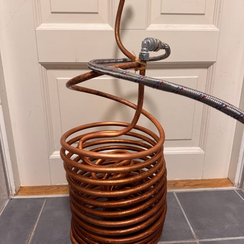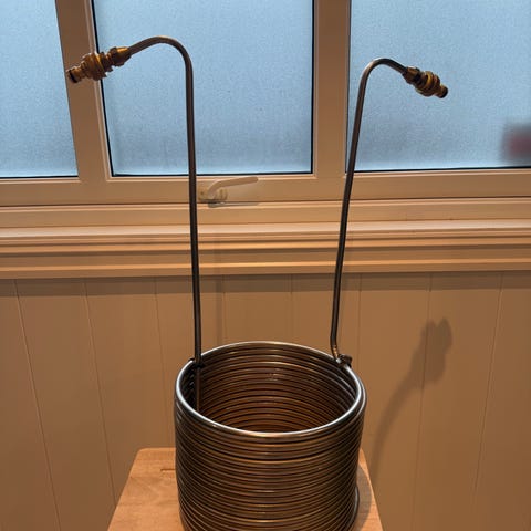 Selger kjølespiral i kobber brukt til ølbrygging og rask nedkjøling av vørter.