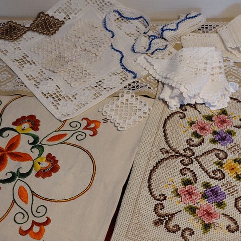 Fint håndarbeid, brodert på tungt ullstoff, jeg tror det heter klede.