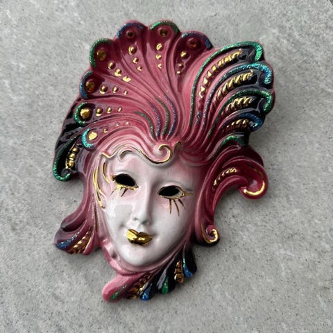 Karneval? Denne skumle masken er laget av pappmasje og malt med Acrylic. Rikt dekorert.