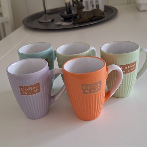 Sett av 6 drikkebeger. Praktiske å ta med på tur eller til å dekke opp bordet i hagen.