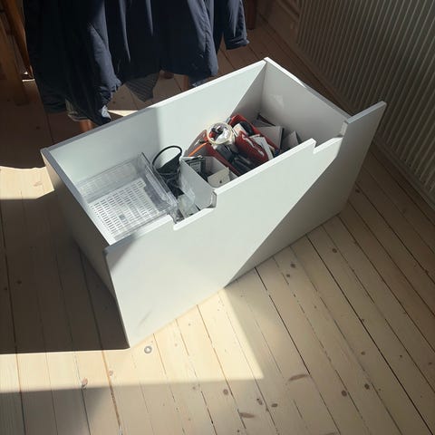 Tre stk oppbevaringshyller fra IKEA til klær, sko eller hva man måtte ønske. Praktisk og pene, hentes opp på garderobestang.