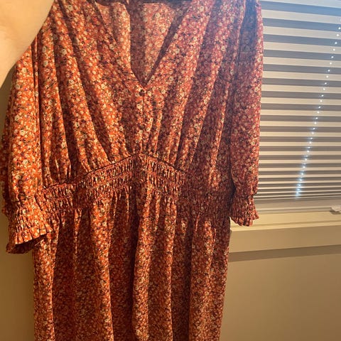Mango hverdagskjole i størrelse XL. Kjolen har en oransje farge, ideell for hverdagsbruk. Den er designet for kvinner og gir en komfortabel passform. Perfekt for ulike anledninger.