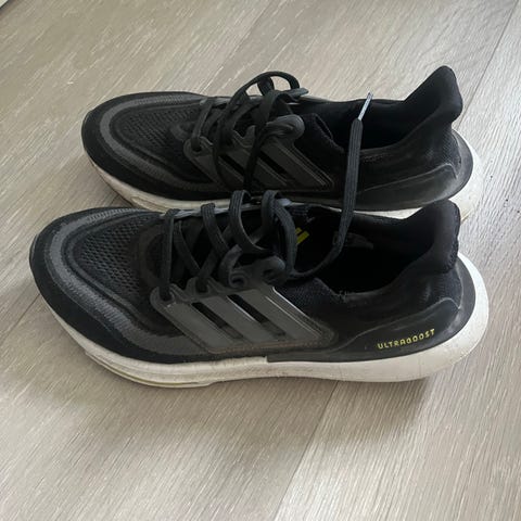 Adidas Ultra Boost løpesko i størrelse 40. Skoene er grå med en pustende overdel som gir komfort under løping. Designet for å gi optimal demping og støtte for løpere.