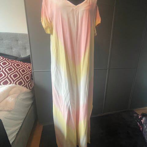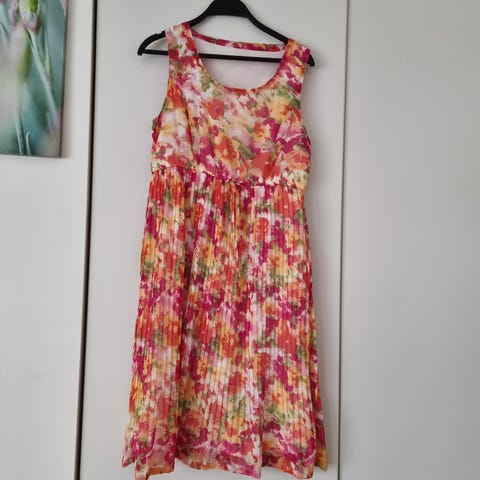 Gerry Weber Hverdagskjole i flerfarget design, størrelse 46. Kjolen har et fargerikt mønster og er laget for hverdagsbruk. Den er ideell for kvinner som ønsker en komfortabel og stilfull kjole til daglig bruk.