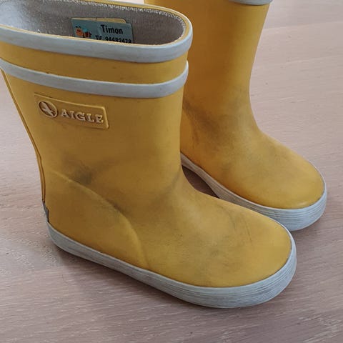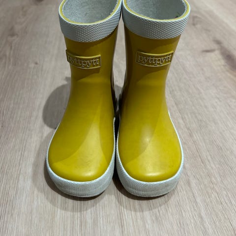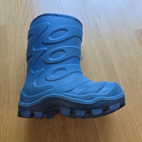 Hele og fine gummistøvler. Lette, myke og gode for de minste. Ser fortsatt litt skitne ut etter vask. Store i str. Innersålen er 15,5 cm.