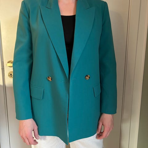 Ubrukt blazer str M. Fint snitt med skulderputer. Fin blåfarge