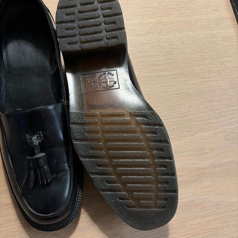 Dr. Martens Tøfler og Tresko med leopardmønster i størrelse 37. Disse skoene har et unikt design med justerbar spenne og solid såle, ideelle for både innendørs og utendørs bruk.