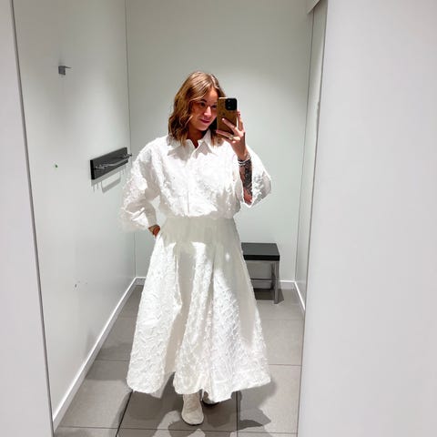 Pent brukte dameklær, mye ubrukt. Gensre/ bluser/ bukser 250. Tyllskjørt 800,- ( ubrukt) Komplett dress 900,-( ubrukt). Svart hvit kjole fra Coster 900,-.