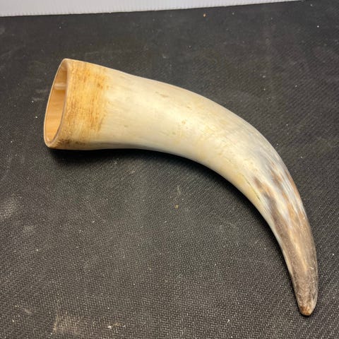 Fra dødsbo. Uferdig drikkehorn og kanne i surbjørk