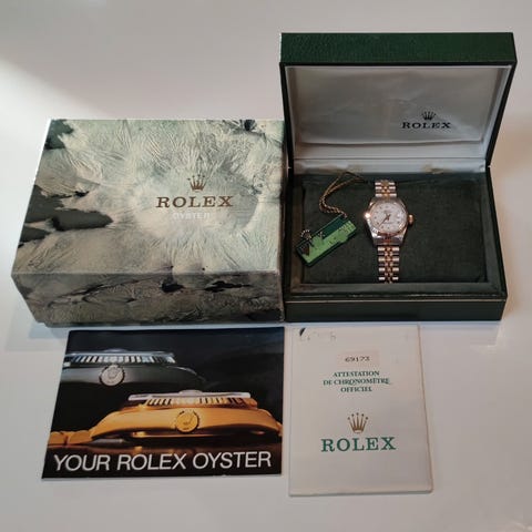 Selger en flott, pent brukt Rolex Datejust dameklokke i 18K gull (750).
