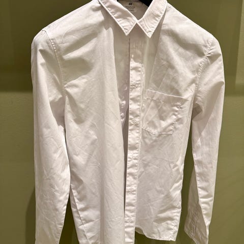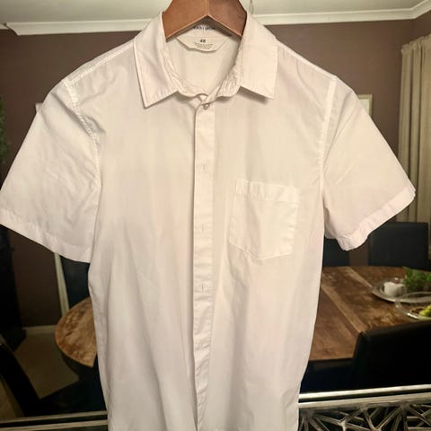 H&M Easy Iron skjorte for gutter i størrelse 164. Skjorten er hvit og laget for enkel stryking, noe som gjør den praktisk for daglig bruk. Passer godt til både formelle og uformelle anledninger.