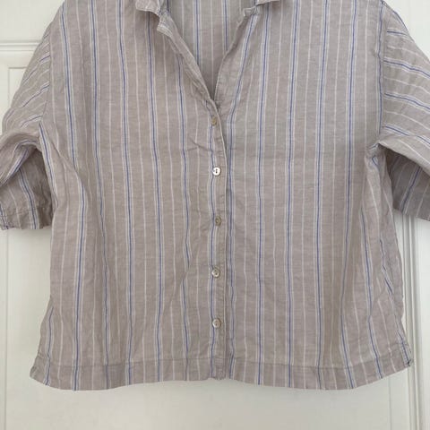 Linskjorte i oversized modell med knepping foran og klassisk skjortekrage. Sjenerøs passform i lang modell. Lange ermer og vid mansjett med knepping i ermeåpningene. Laget av 100 % lin som holder deg sval, men likevel elegant gjennom hele dagen. - Generøs passform- Lang modell- Vide -mansjetter. Lett vasket look.