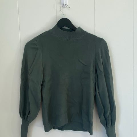 Gestuz t-skjorte i størrelse 36. Skjorten er i fin sjøgrønn farge og laget av en blanding av viskose og elastan, noe som gir den en behagelig passform og lett stretch. Designet har en høy hals og korte ermer med rynkedetaljer.