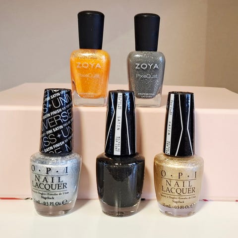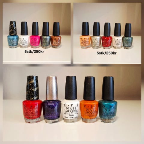 OPI neglelakk samling med flere farger. Inneholder et bredt utvalg av nyanser som passer til ulike anledninger og stiler. Perfekt for å variere neglelakk etter behov.
