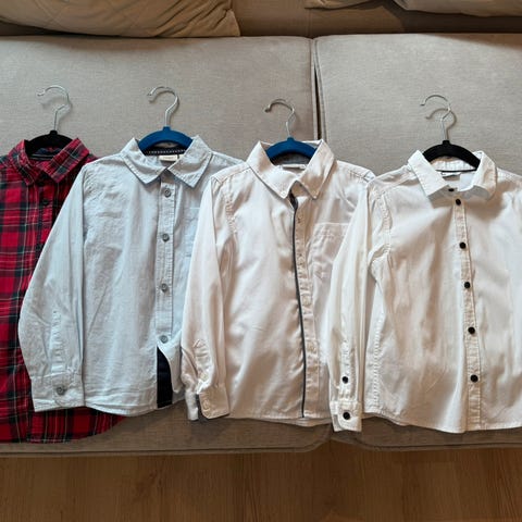 4 skjorter for gutter i størrelse 146/152 laget av lett og pustende materiale.