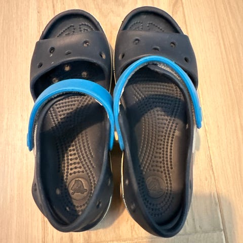 Sandalene er blå med turkise/lyseblå detaljer og laget av slitesterkt materiale. Designet gir komfort og støtte, perfekt for både innendørs og utendørs bruk.